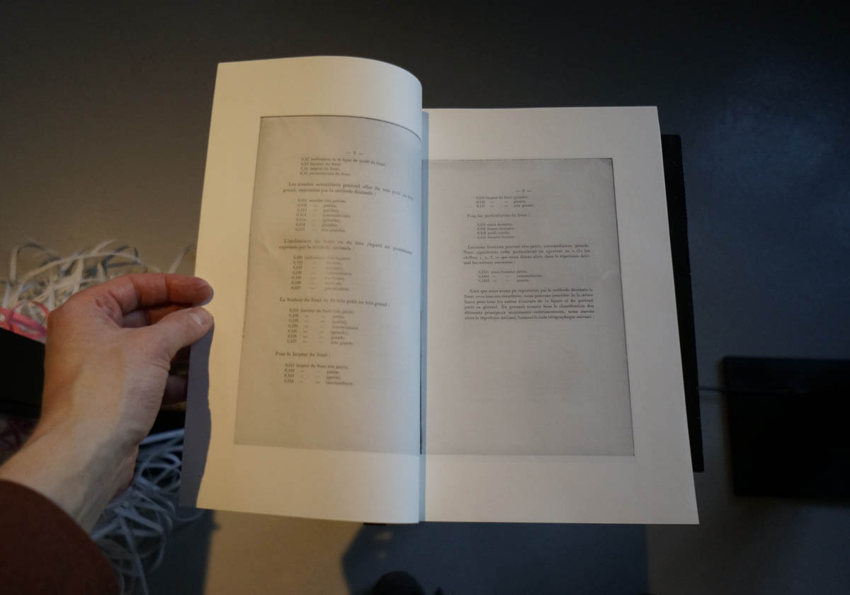 Developed by Alphonse Bertillon, a French criminologist and biometrics researcher, Portrait Parlé was a set of standardized methods for describing traits like face shape, nose type, or eye color. In the early 20th century, Paul Otlet, today considered the father of information science and open knowledge, proposed streamlining this system and its distribution by deploying telegraphic technology. Consequently, in 1907, Rodolphe Archibald Reiss, a disciple of Bertillon, developed a telegraphic code for the efficient conversion and transmission of information from Bertillon's spoken portrait system to facilitate the international surveillance of suspected individuals.