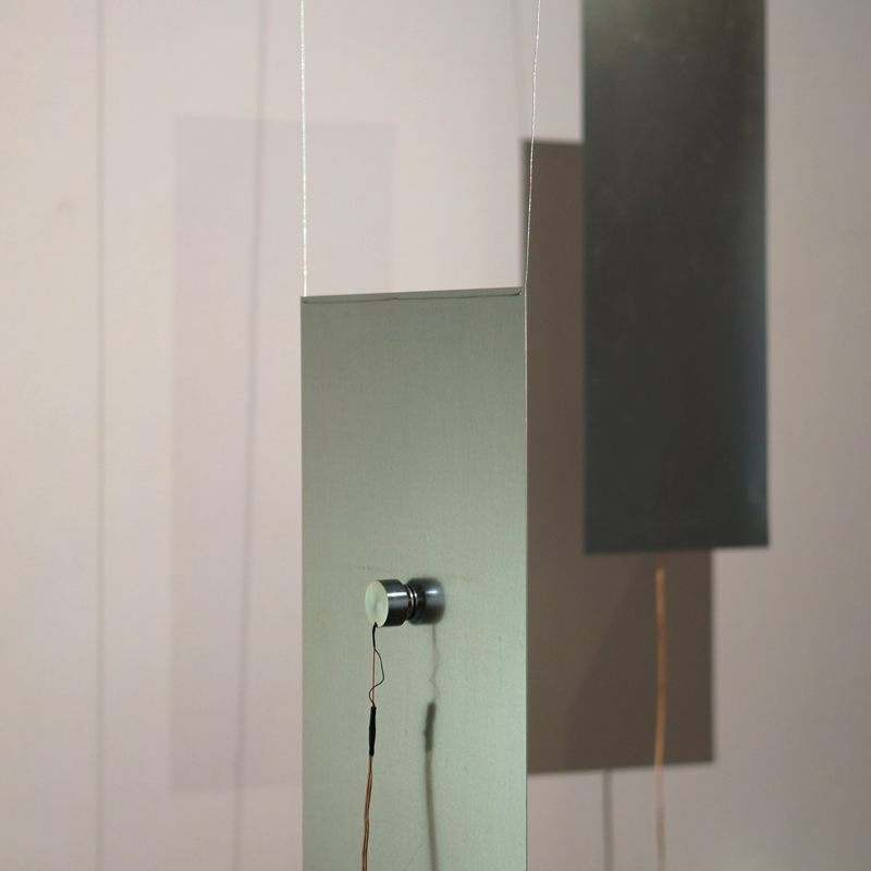 Utilizing four steel sheets and transduction of a 4-channel soundscape composition into vibrations, the piece transports listeners to several vulnerable environments